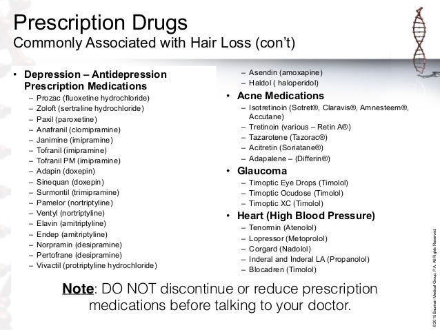 As you’ll see below, there are many, many medications and therapies that can trigger hair loss. The good news is, most drug-induced hair loss is reversible once you stop taking your medication. Let’s take a look at some common prescription drugs and over-the-counter (OTC) products that can induce hair loss. Drug-induced alopecia––hair loss that develops as a side effect of medication––often occurs within three months of starting a new drug. The exact timeline depends on the drug and the type of hair loss. The severity of alopecia also depends on the dosage, as well as any sensitivities you have to medication.